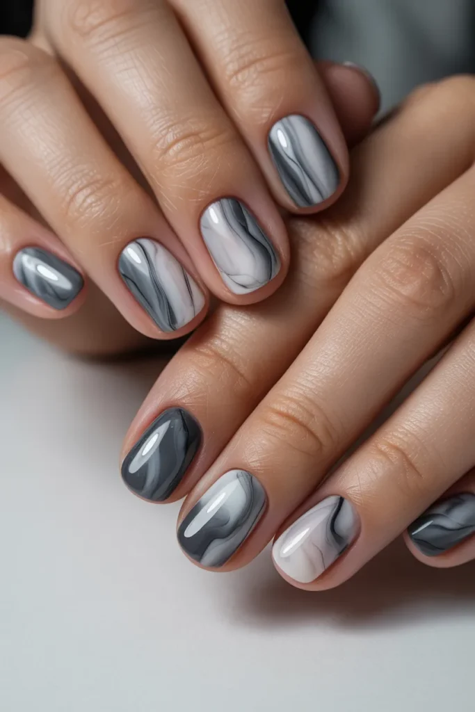 White and grey swirls mimic marble for a classy, high-end vibe.