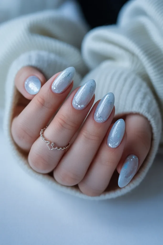 Cool icy blue shades with shimmer for a fresh winter or icy-inspired look.