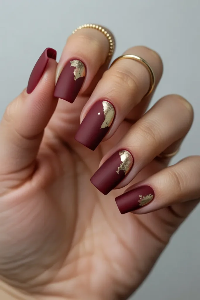 Deep red matte base with shiny gold foil for a luxurious, elegant finish.