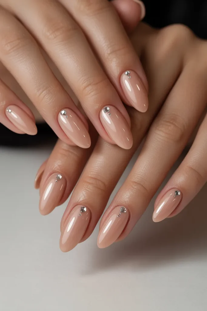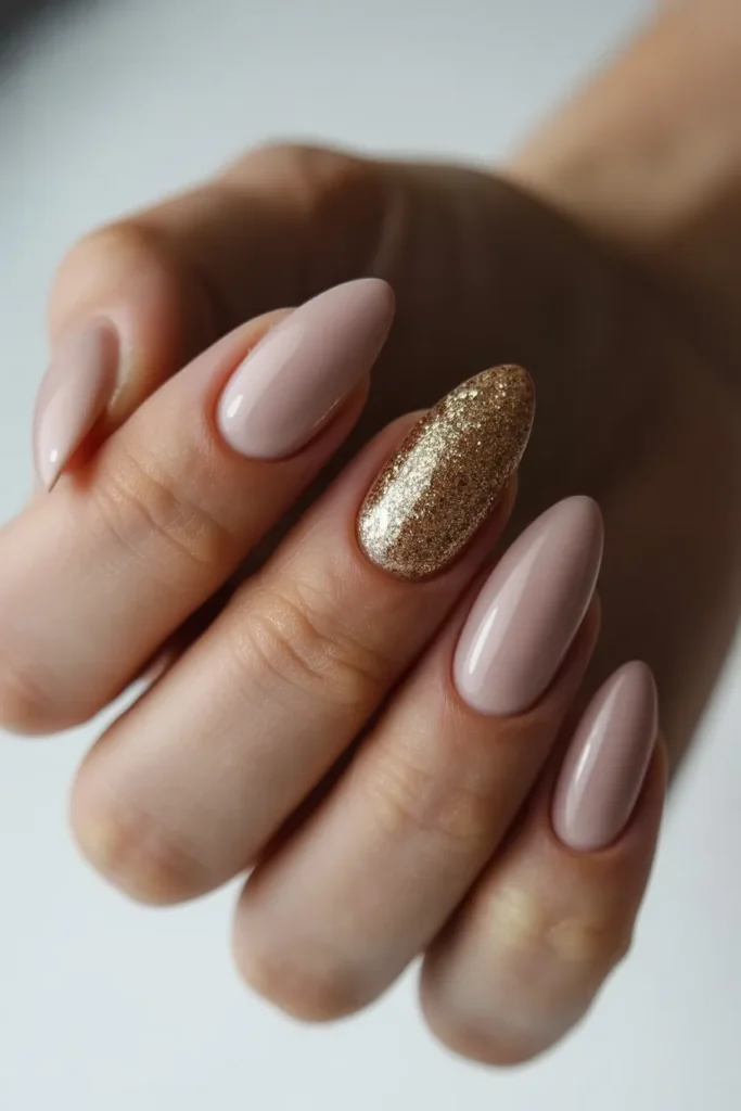 Combine matte nude with glitter accents on one or two nails for subtle glam.