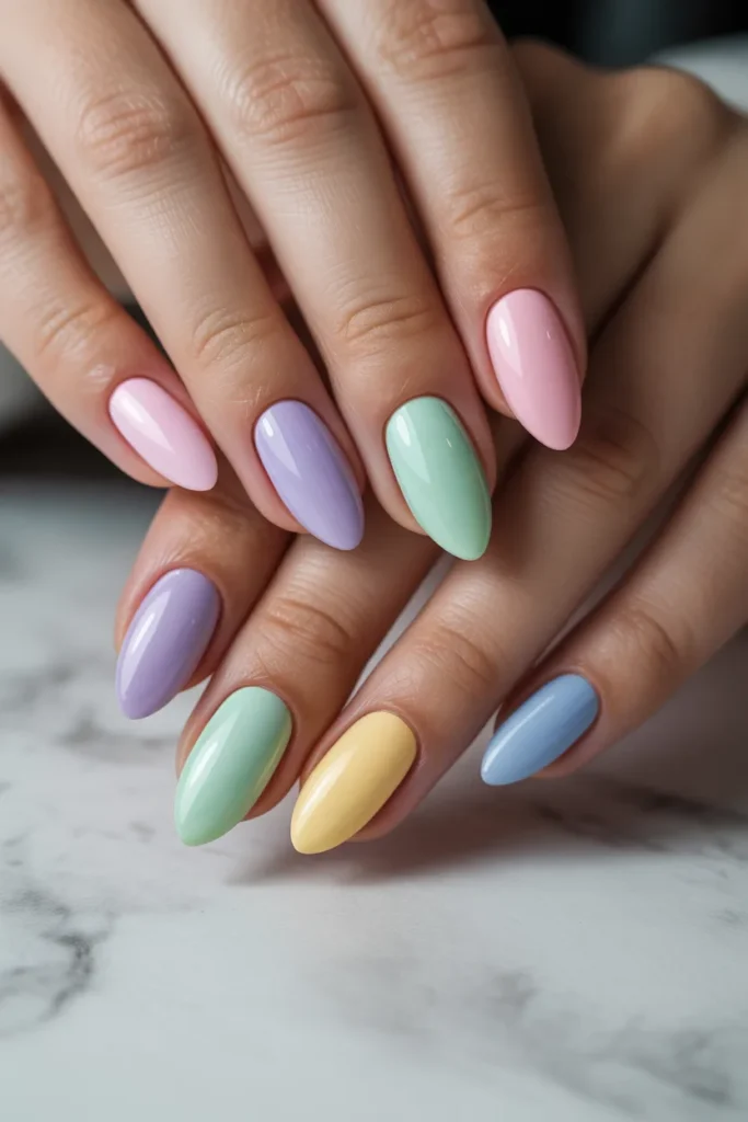 Soft rainbow colors in matte finish for subtle, fun, and trendy nails.