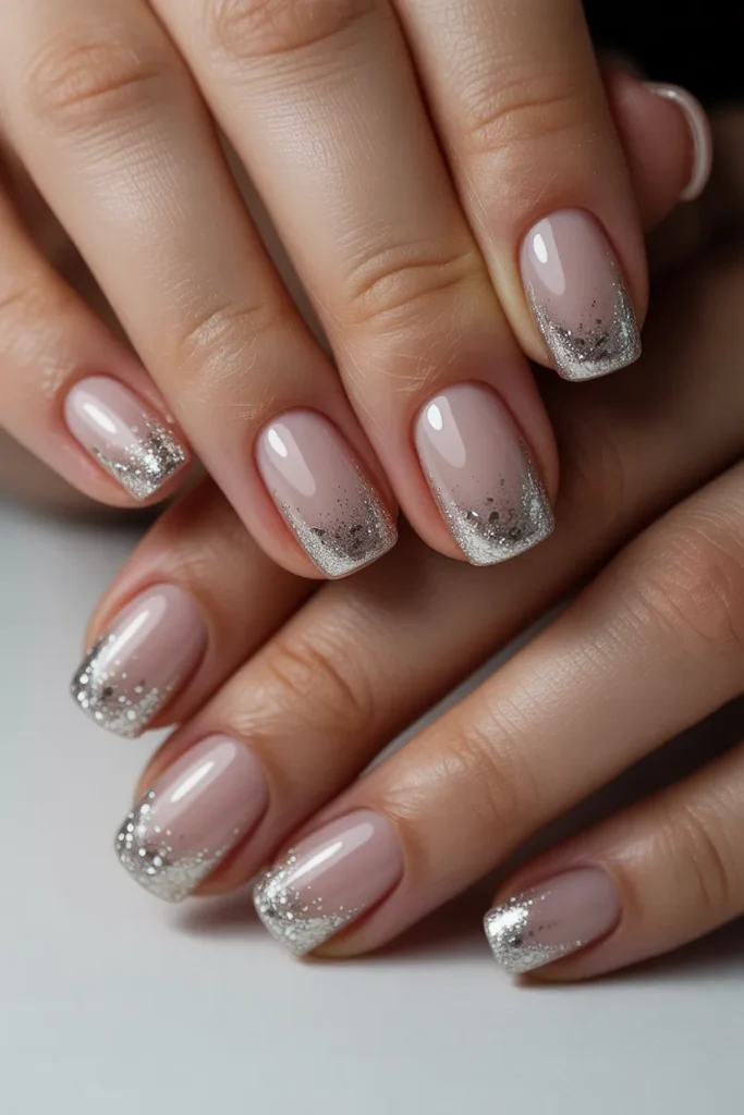 Transition from nude to glitter for a glamorous effect. Perfect for parties and nights out.