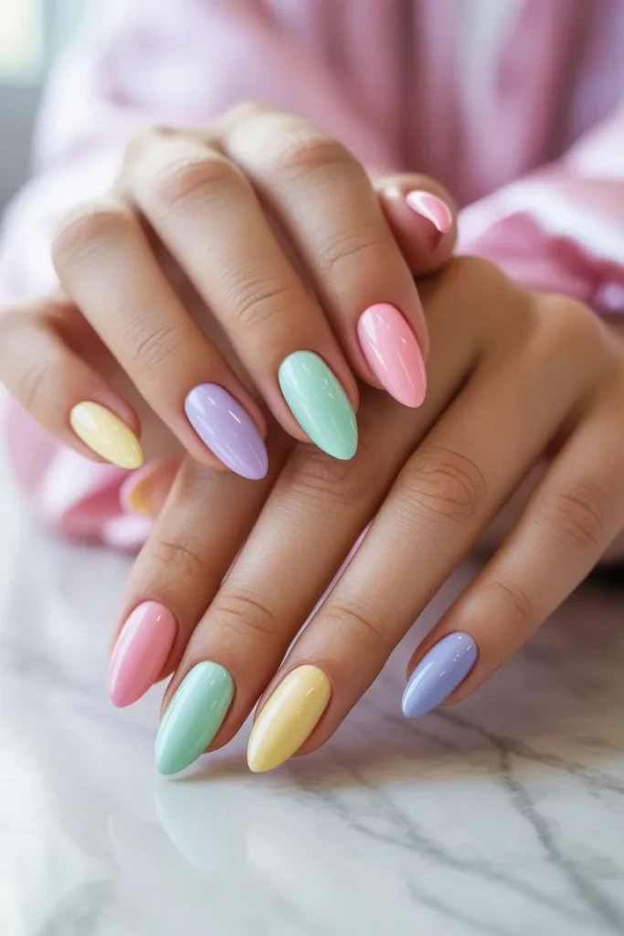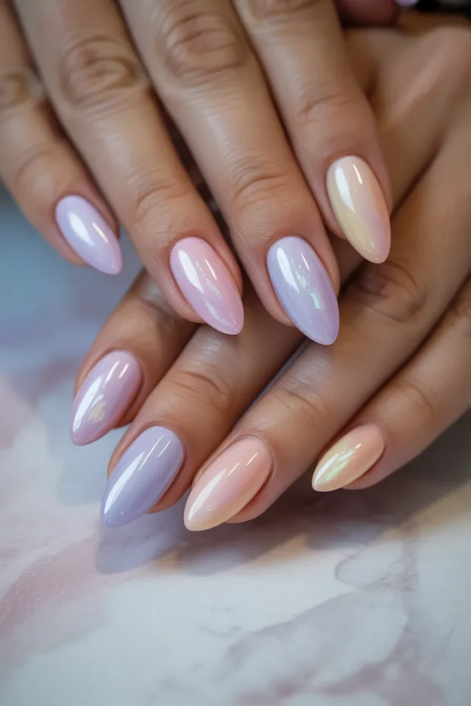Soft color transitions between pastel shades for dreamy and delicate nails.