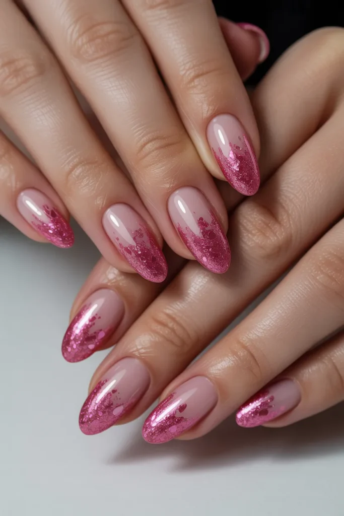 Start glitter at the base and fade upward for sparkling drama without being too bold.