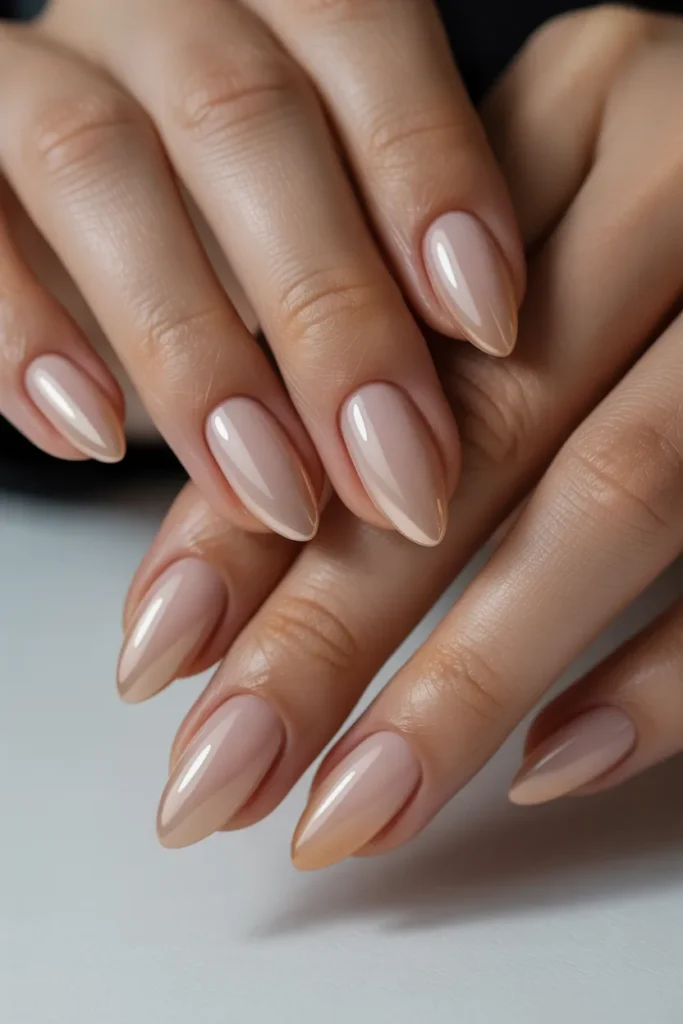 Gradient nude nails create a smooth transition between soft neutral shades.