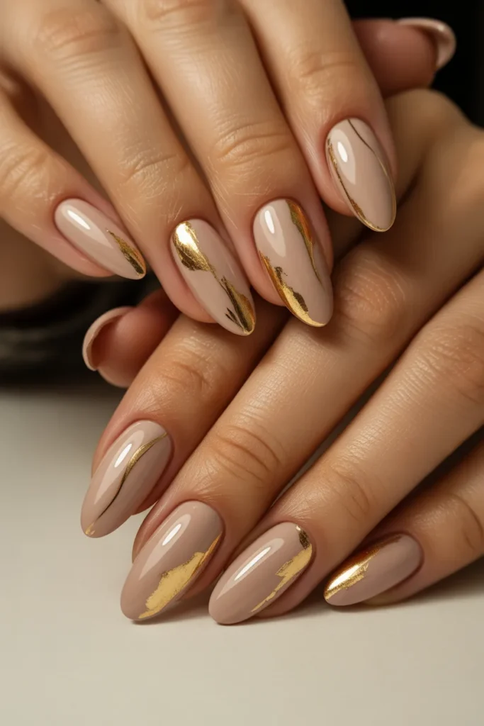 Warm beige, taupe, and brown tones for natural and sophisticated nails.