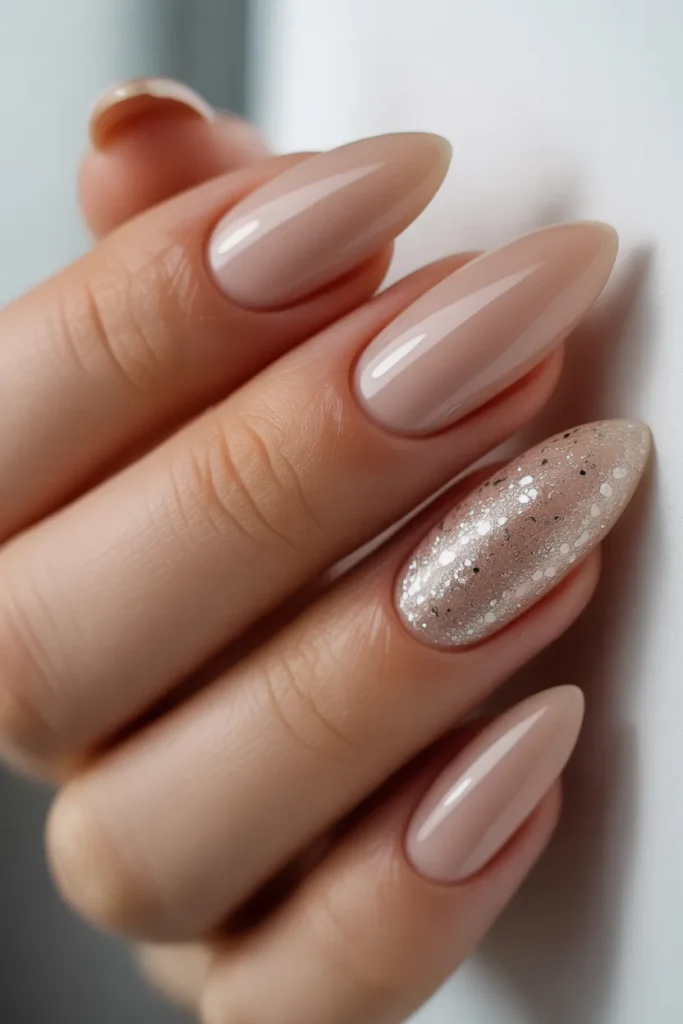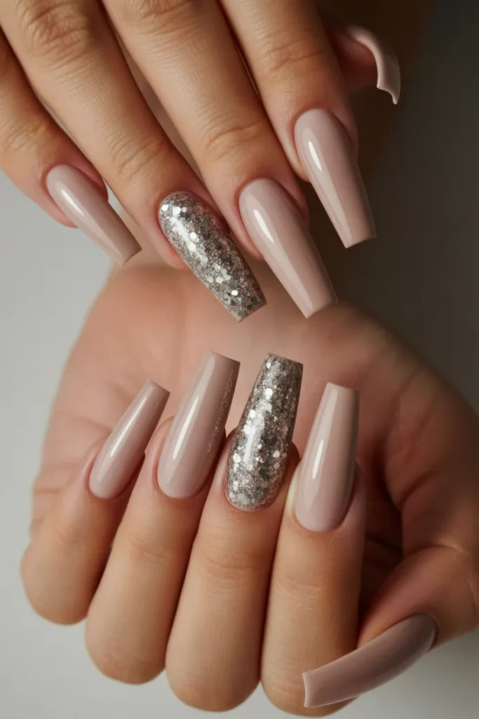 Add sparkling glitter to one or two nails for a glamorous touch without overpowering your manicure.