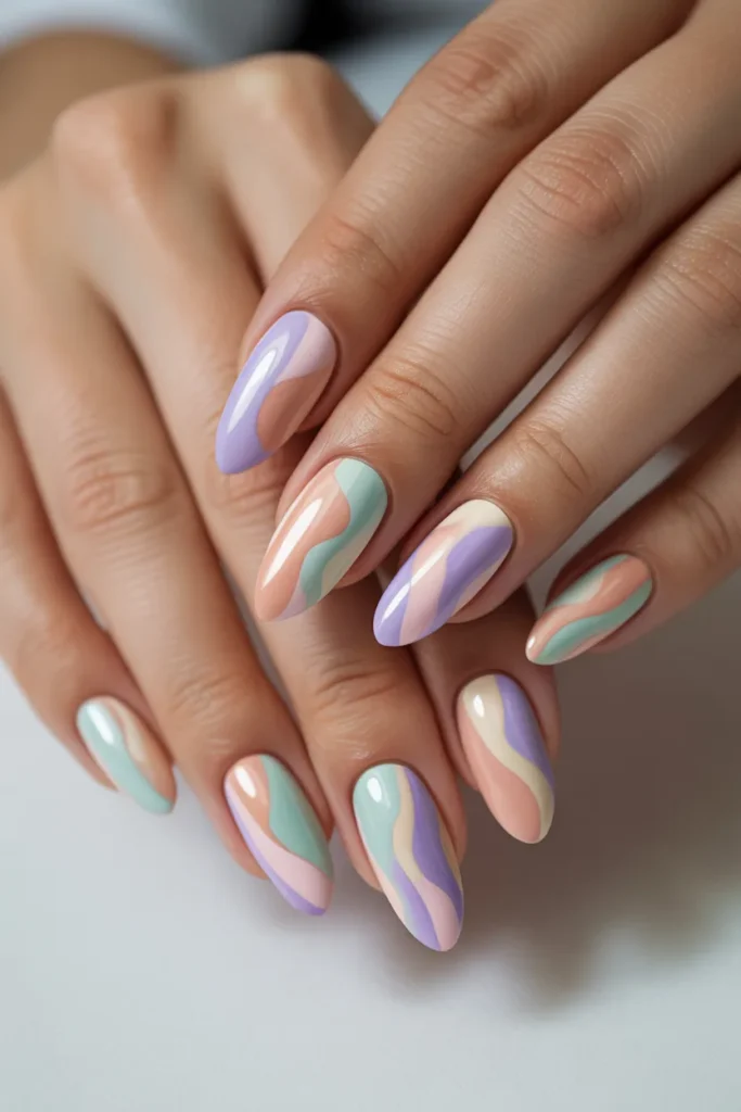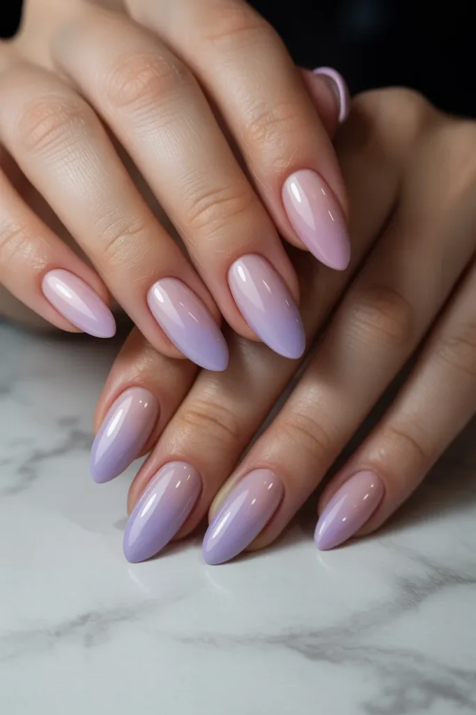 Soft pastel gradient across nails gives a whimsical, trendy look.