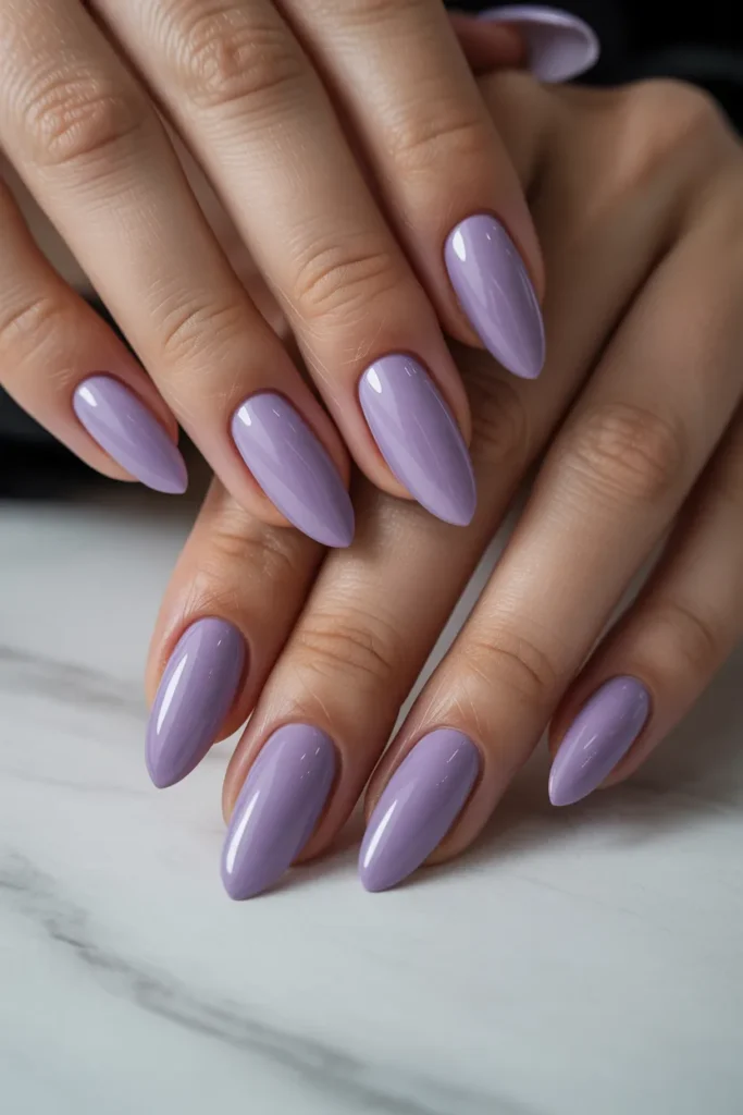 Muted lavender shades are trending for calm, elegant, and feminine nails.