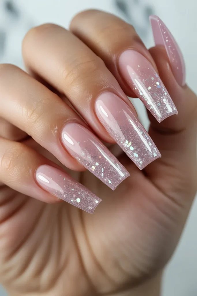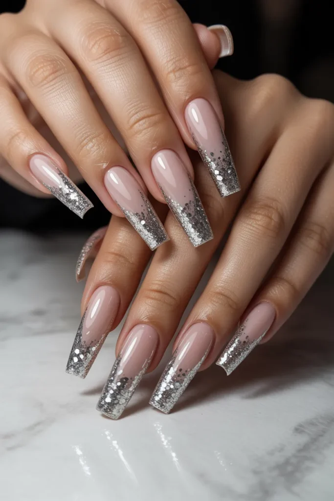 Ombre glitter gradients give nails a sparkling, festive vibe.