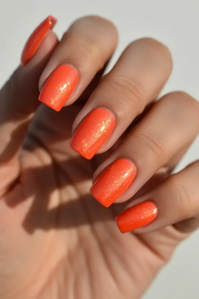 Coral glitter nails are bold yet feminine. They catch the light beautifully.