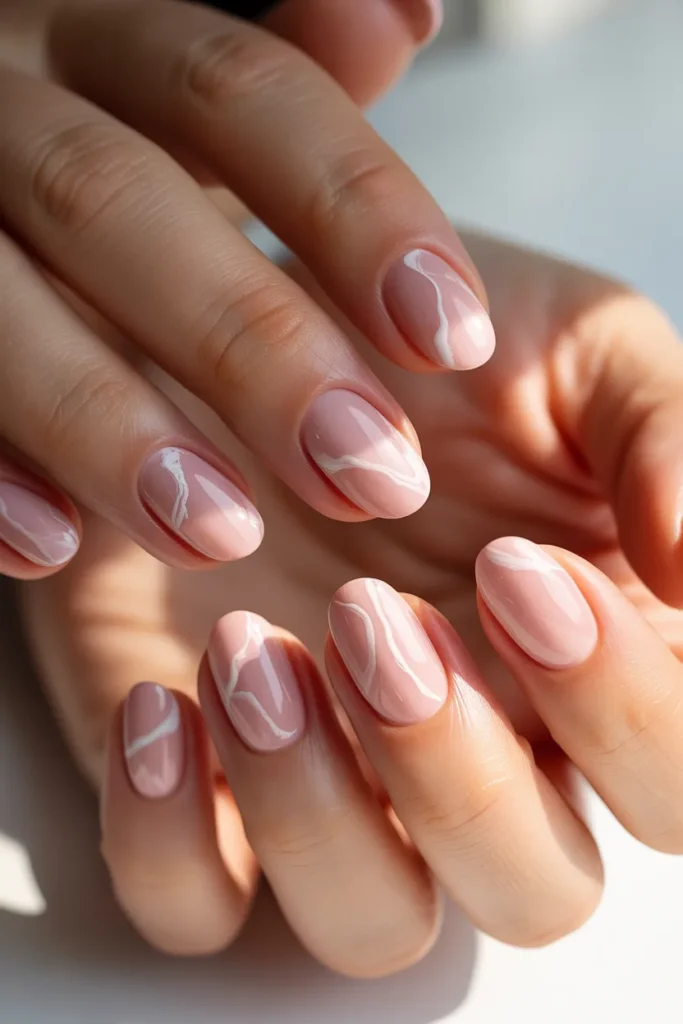 Marble designs add a luxurious feel. The soft pink keeps it playful and summer-ready.