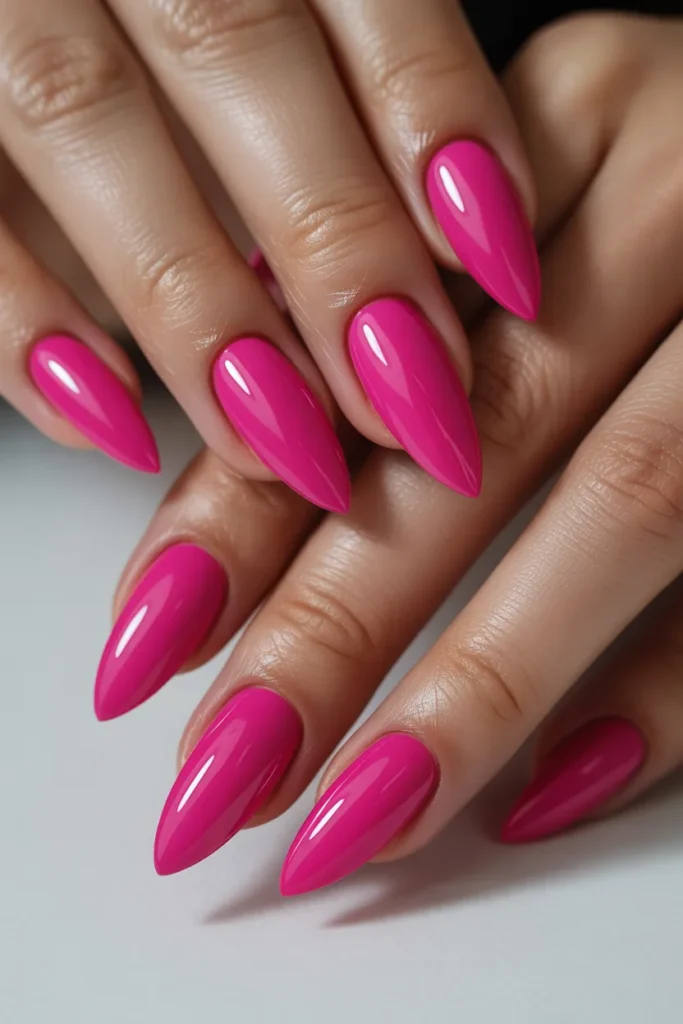 Bold pink nails are unapologetically fun. They instantly brighten your entire look and feel ultra-glam.