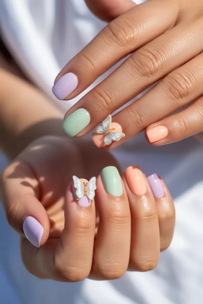 24. Butterfly Accent Nails