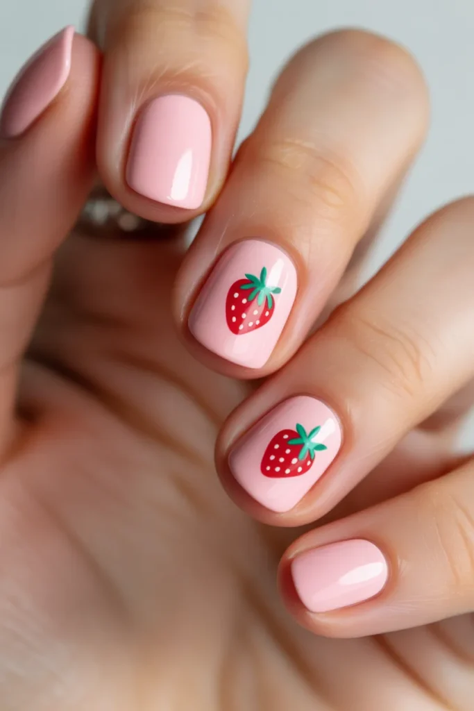 Strawberry art is cute and Instagram-worthy. It adds playful personality to your manicure.