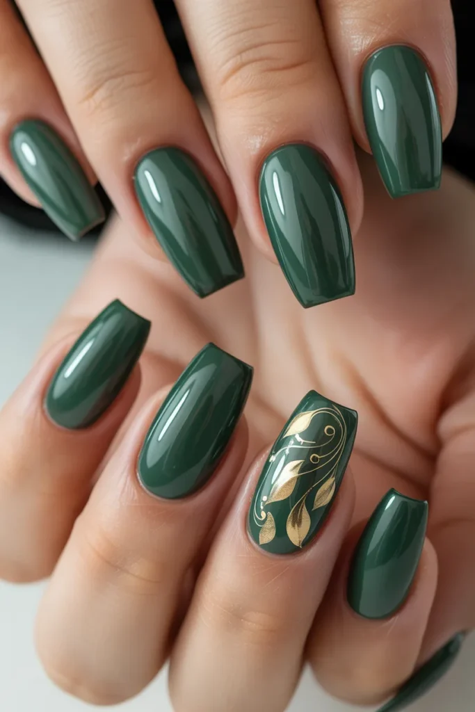 Highlight a single nail with intricate jade-inspired designs while keeping the others simple to create balance. Popular accent styles include leaves, swirls, or gold foil, making your manicure both elegant and playful. Perfect for those who want standout nails without overcomplicating the entire look.