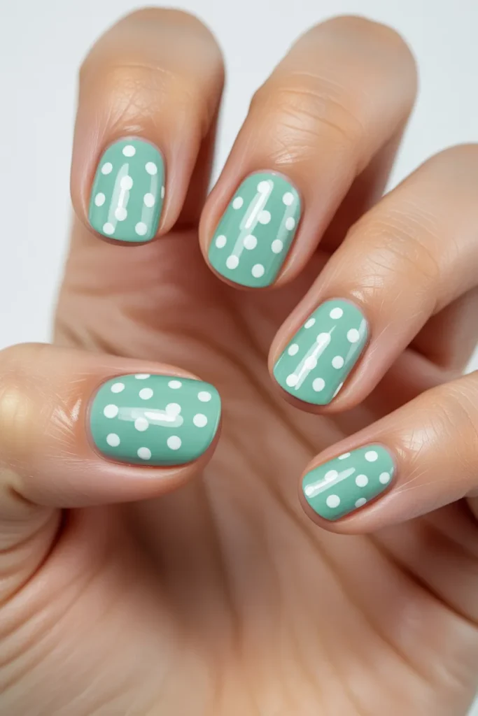 Fun and playful, jade polka dots are great for adding a whimsical touch to your manicure. Use contrasting shades like white, gold, or pastel green for the dots. This style is casual yet stylish, perfect for everyday wear.
