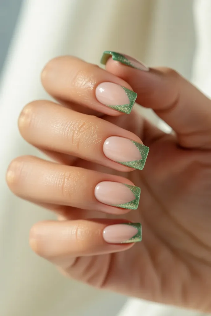 19. Jade Glitter French Tips