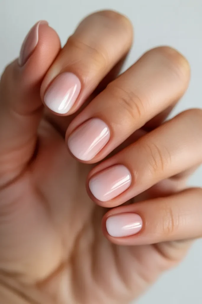 A milky white base paired with a soft pink blush creates a dreamy and delicate manicure. The creamy tone enhances the blush effect, making it look more diffused and elegant. This style is especially popular for bridal or formal occasions. It gives a clean, pure, and sophisticated finish.