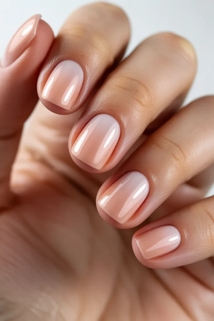 Glass skin blush nails are all about that ultra-glossy, reflective finish that looks almost wet. The soft blush gradient underneath gives a natural flush effect while the shine makes your nails look healthy and plump. This design is perfect if you love clean, high-shine aesthetics. It pairs beautifully with minimalist outfits and everyday looks.