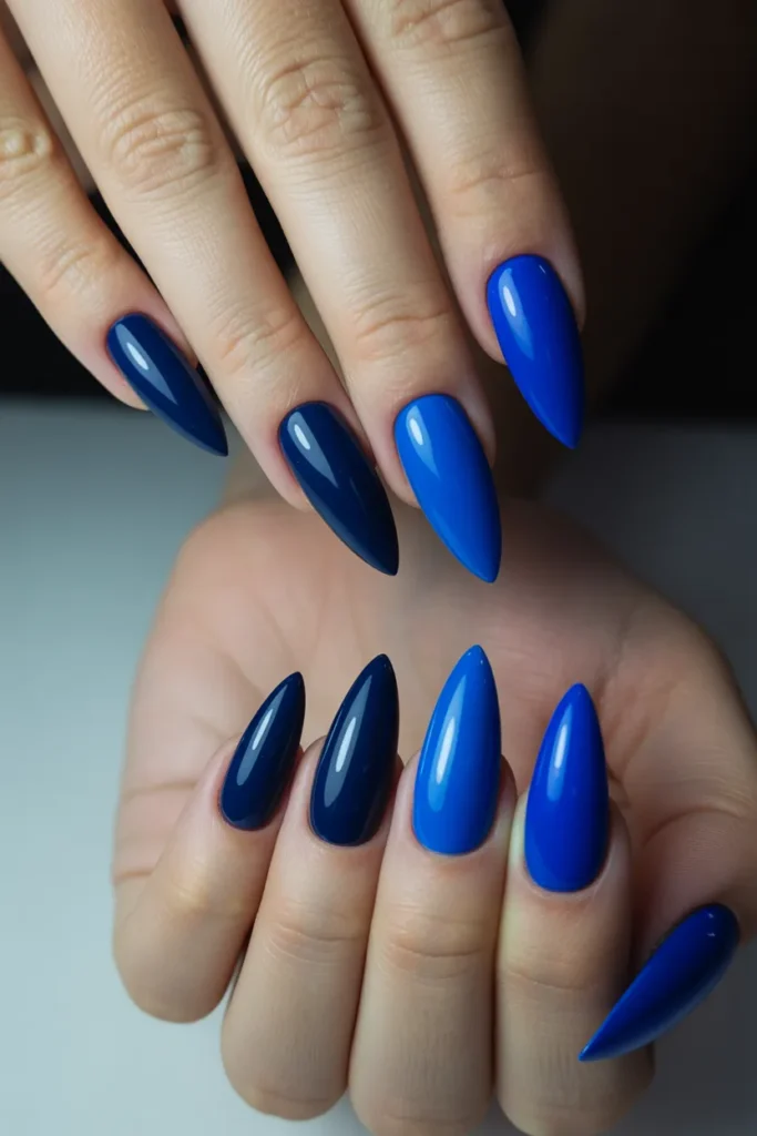 Blue stiletto nails make a bold yet versatile statement. From deep navy to icy baby blue or vibrant cobalt, these nails can be elegant, edgy, or playful. Perfect for any season and any occasion where you want to stand out.