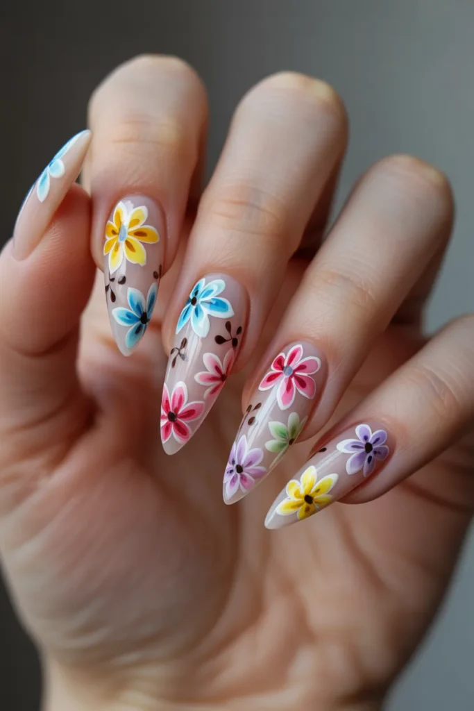 8. Floral Stiletto Nails