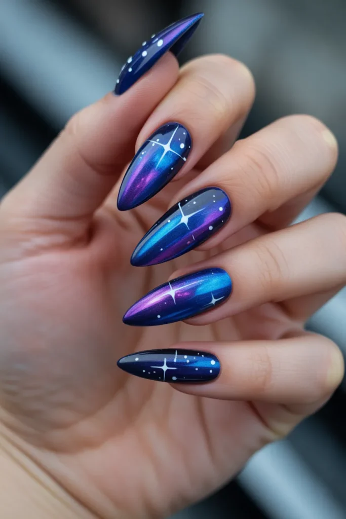26. Galaxy Nail Designs on Stiletto Nails