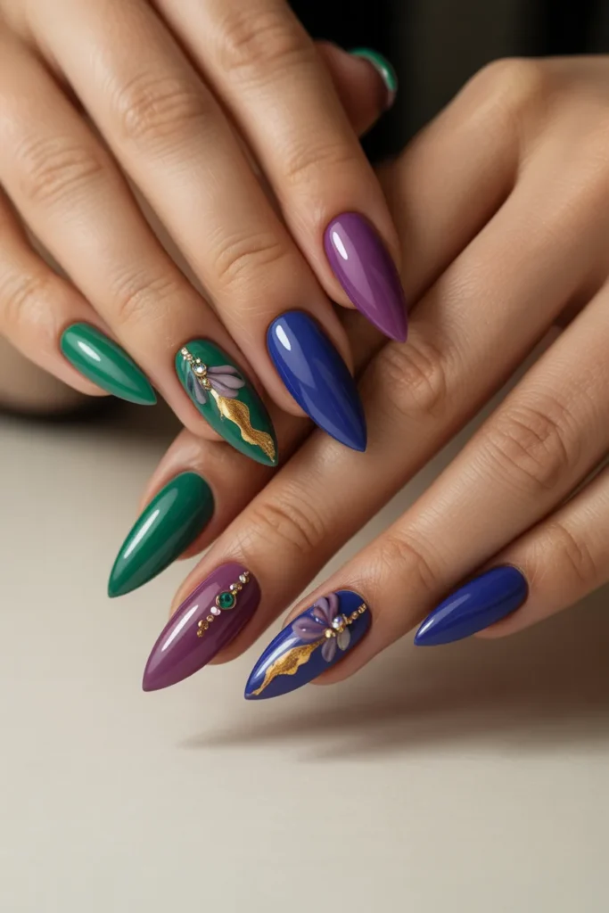 Pastel stiletto nails are soft, dreamy, and perfect for spring or summer vibes. Colors like baby pink, lavender, mint, and sky blue create a delicate and feminine look. These nails are ideal for casual outings, weddings, or everyday chic style.