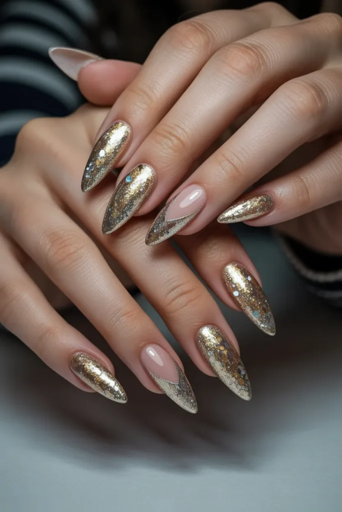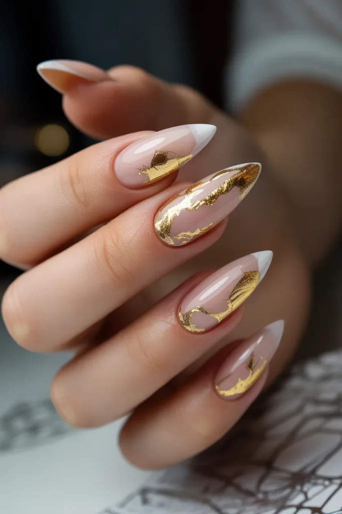19. Gold Foil Accents Stiletto Nails