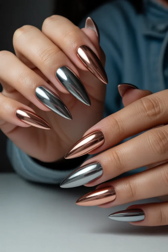 28. Metallic Stiletto Nails