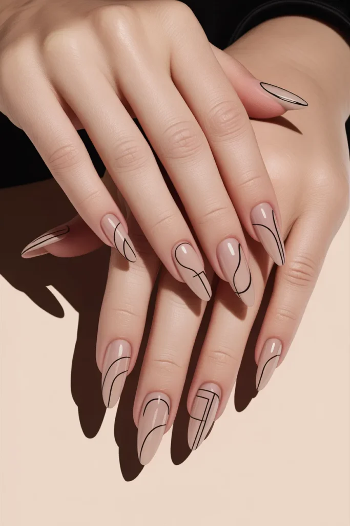 12. Minimalist Line Art Stiletto Nails