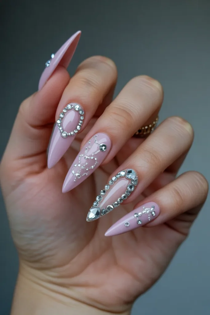 Rhinestone stiletto nails are for those who love sparkle and glamour. Adorned with crystals and gems, these nails are bold, luxurious, and perfect for special occasions like weddings, parties, or photo shoots. They turn your manicure into a true statement piece.