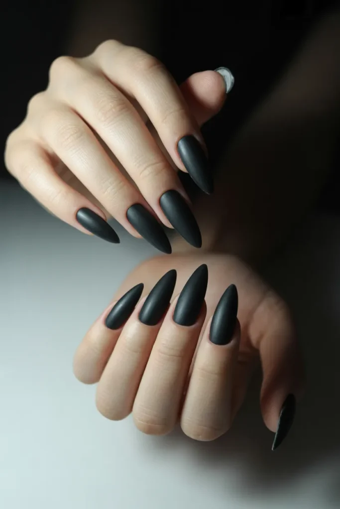 4. Black Matte Stiletto Nails