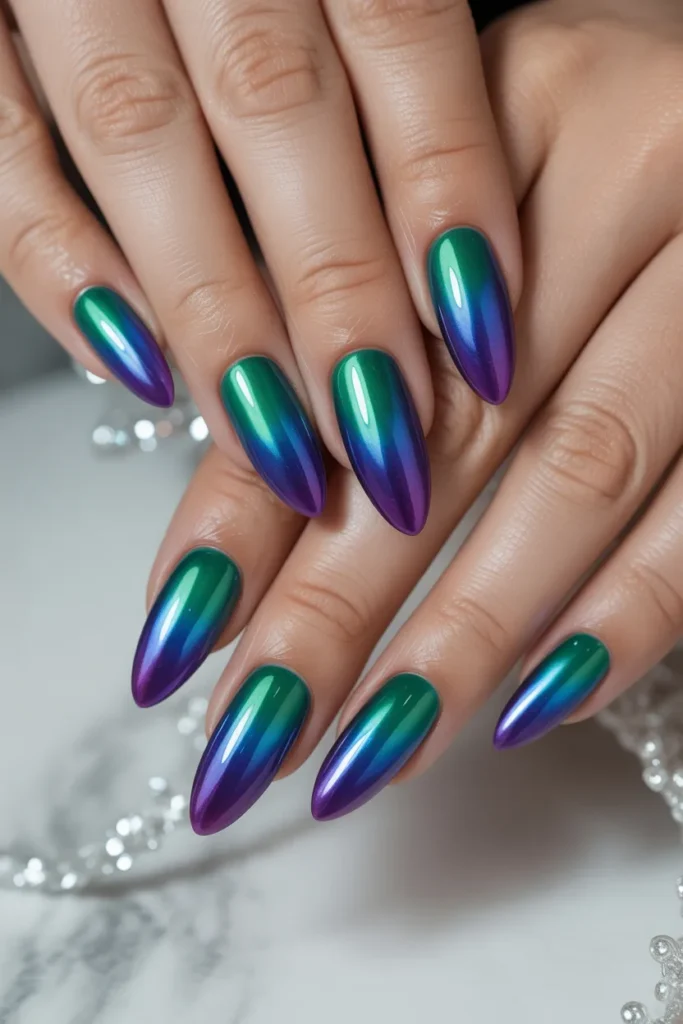 Blend blues, greens, and purples to mimic the Northern Lights for magical nails.