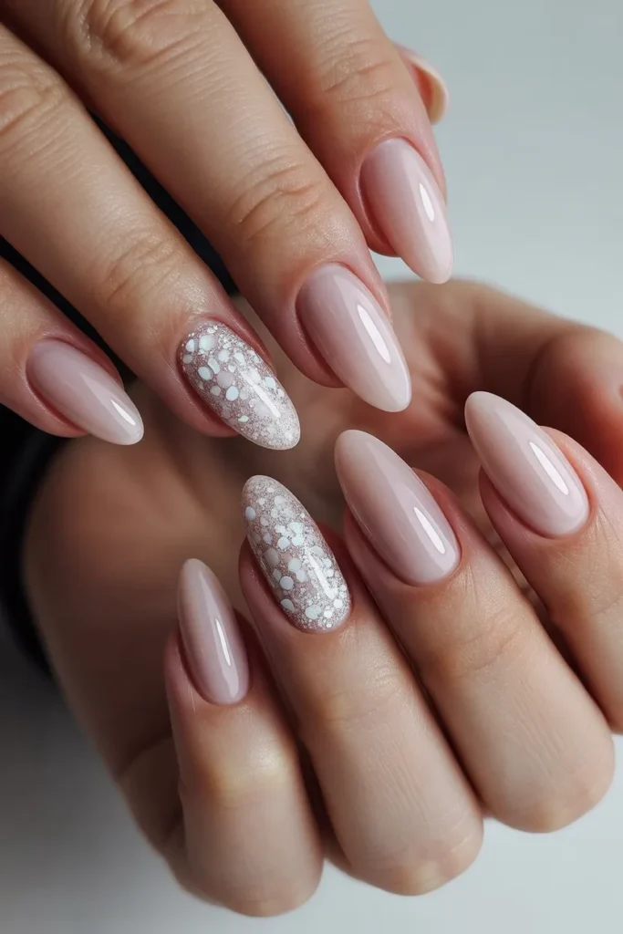 One or two glittery accent nails add sparkle without overwhelming the design.
