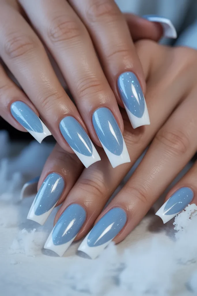Clear or light-colored nails with glittery tips for a subtle, sparkling winter effect.