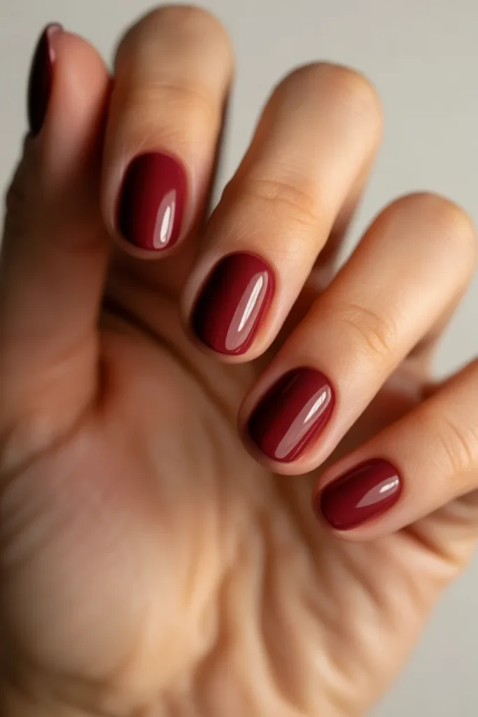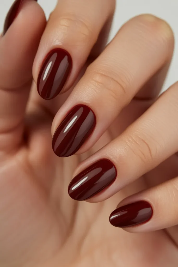Nothing beats the timeless elegance of classic glossy burgundy nails. The deep, rich hue instantly adds sophistication to any look, whether casual or formal. This style works beautifully on all nail shapes and lengths, making it a versatile choice for everyday wear. A shiny finish ensures your nails look polished and luxurious at all times