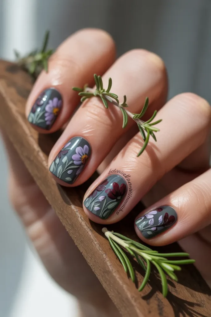 Witch garden nails combine dark florals with earthy tones for a soft yet mystical look. Designs often include herbs, flowers, and vines layered over a moody background. This style feels natural, feminine, and enchanting all at once. Perfect for those who love botanical magic.