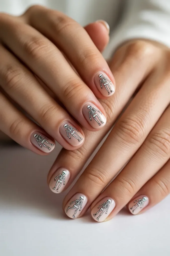These nails strike the perfect balance between spooky and cute with delicate skeleton designs. A nude or soft pastel base keeps the look light while the tiny bone details add a playful Halloween touch. Ideal for those who want something festive without going too dark. This design works great for both short and long nails.