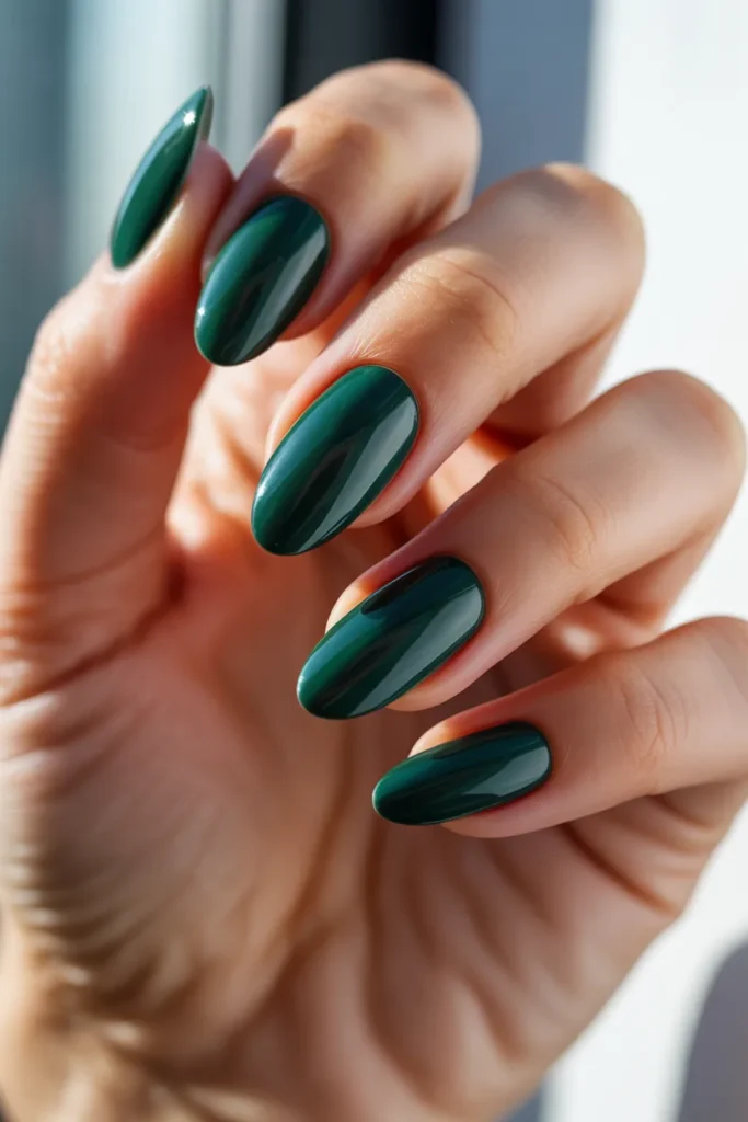 A rich emerald green polish on all nails gives a luxurious and clean look. This design works beautifully for both casual days and evening events. Just apply two coats and finish with a glossy top coat for shine.